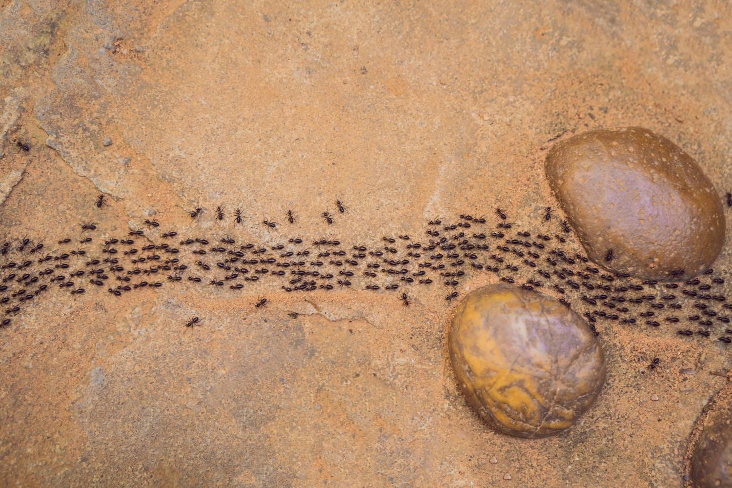 This refers to the use of pheromones to coordinate action over greater distances, like ants laying down a chemical trail for others to follow, which grows into a heavily-trafficked two-way thoroughfare between the nest and a food source. Honeybees use stigmergy even more efficiently: because they move in three dimensions, they can follow pheromones directly to the source, instead of being stuck to the path the first one took.