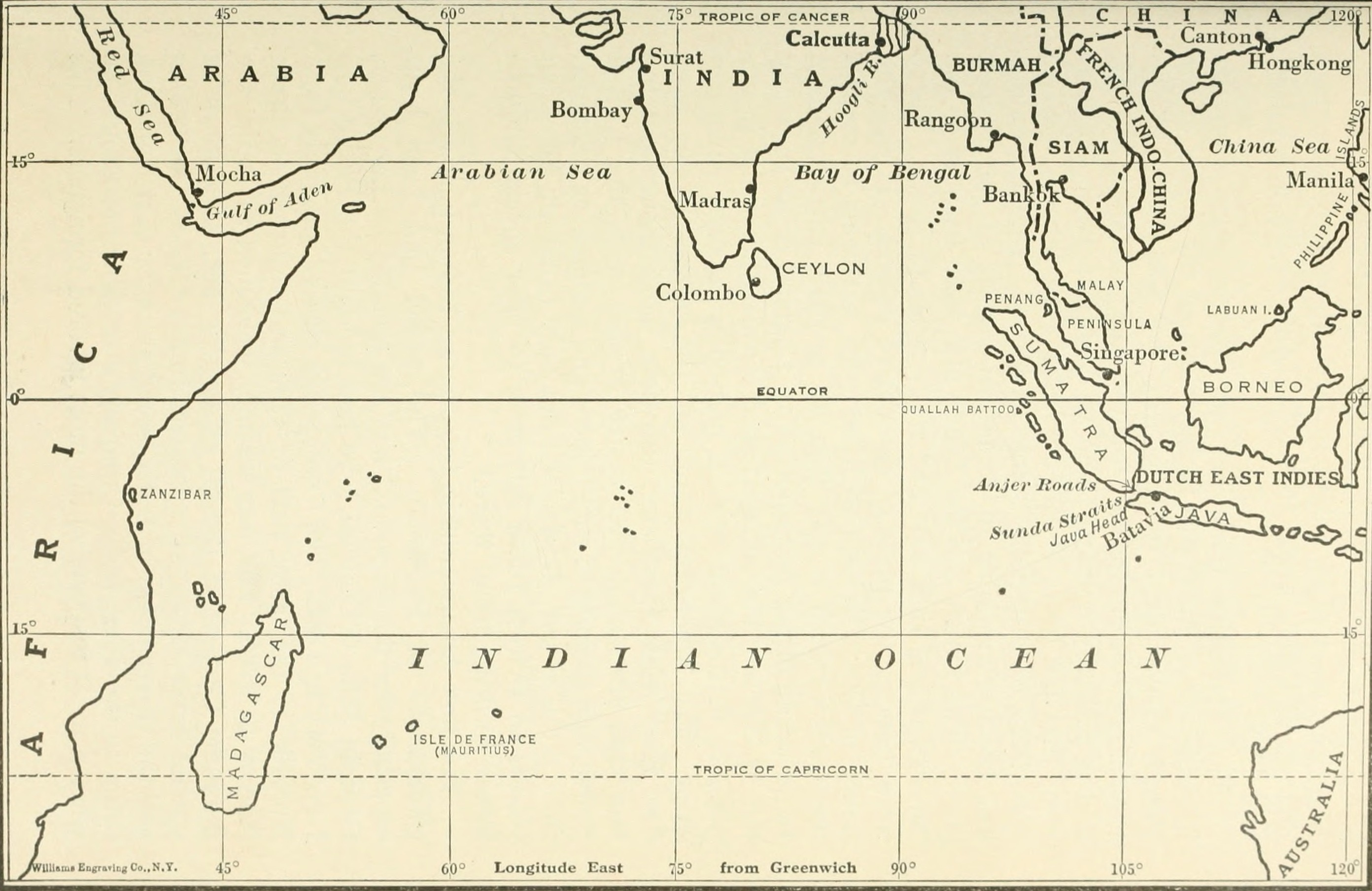 These calculations were further complicated by the bi-seasonal monsoon. A steady southwesterly wind provided fair sailing for ships rounding the Cape of Good Hope in spring; but by November, the monsoon reversed direction as rough winds blew out of the northeast. Ships that did not return to Europe at that time had to find shelter. There were few good harbors on India’s east coast that could protect ships during the winter monsoon, so the British usually retreated to Bombay.
