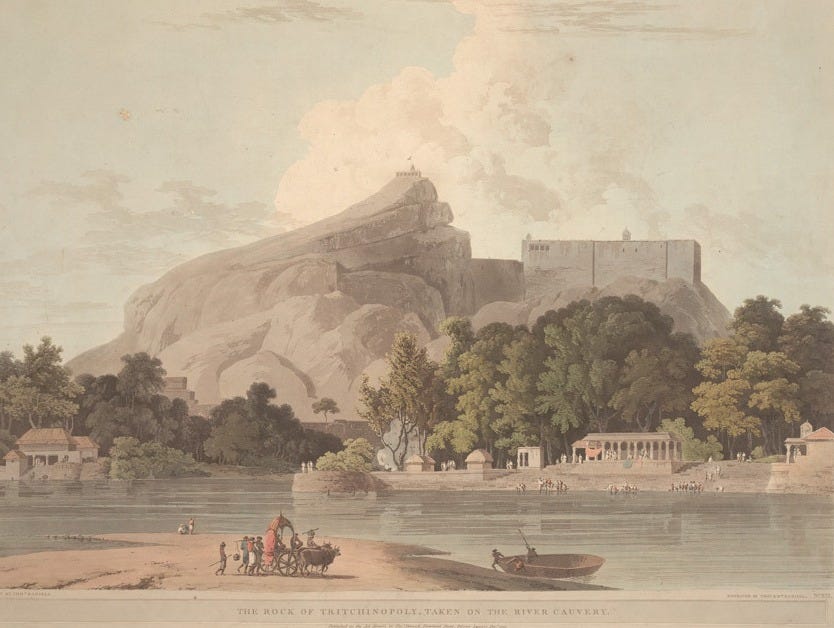 The war, which had lasted not even 18 months, appeared to be over. The French were left in a strong position in southeastern India; all that remained was to assist their allies consolidate their hold. Chanda Sahib’s rival for the throne, Mohammad Ali Wallajah, had taken refuge at the impressive fortress of Trichinopoly in the southern Carnatic, but appeared open to a diplomatic solution.